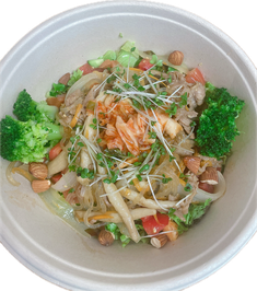 キヌア、アボカド、ブロッコリー、ブロッコリースプラウト、亜麻仁油、くるみ、スピルリナ(ドレッシング)